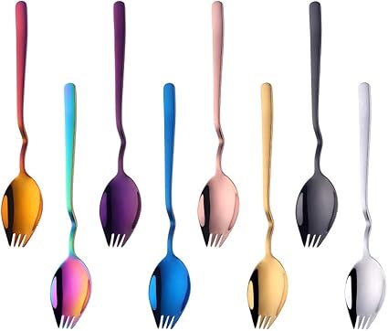 Amazon Co Jp Bisda 先割れスプーン スプーンフォーク 8色8本セット おしゃれ 実用 衛生 ギザ付き ナイフ フォーク スプーン 1本で三役機能 18 8ステンレス鋼製 ホーム キッチン